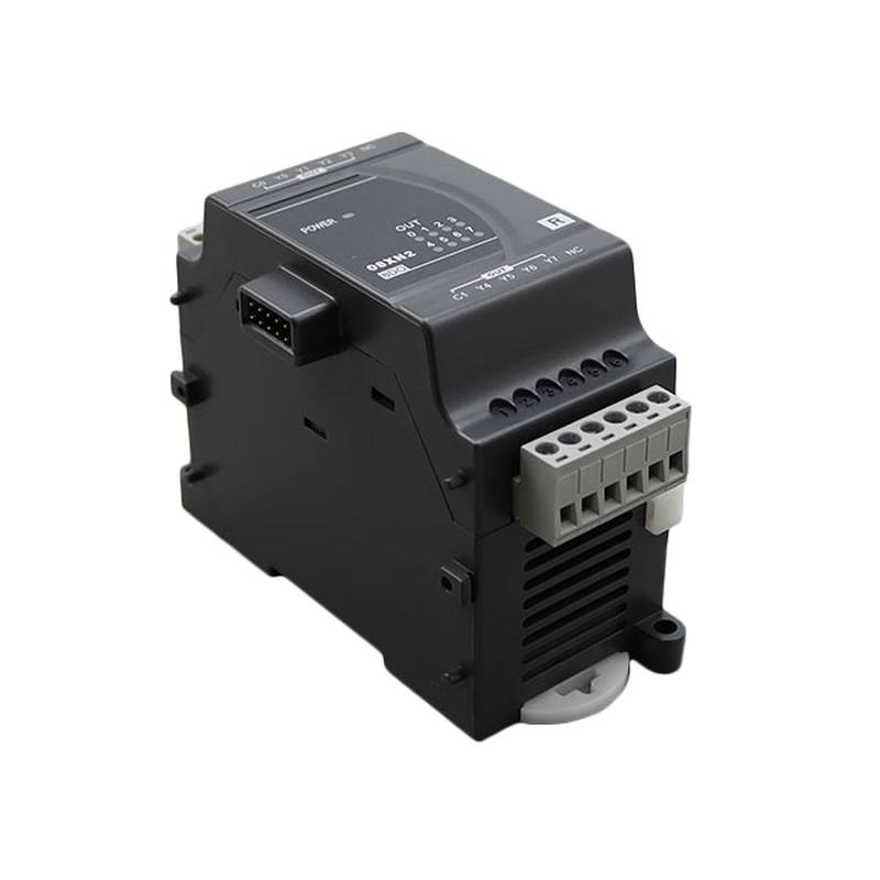 Each of the eight relay outputs has normally open (NO) and normally closed (NC) contacts, along with a common terminal. For simple on/off control, you typically wire one side of your load (e.g., a motor contactor coil) to the common terminal of a relay and the other side to a switched power source. The PLC will then energize or de-energize the relay to control the load.